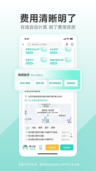 购房助手,购房用户可自主测试房贷按揭,法拍房税费计算,首付成数测试,购房资质测试。