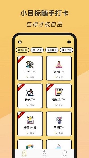 小目标随手打卡app是可以有效帮助大家更好的完成规划生活中的目标打卡人物打造的实用常用工具类产品,丰富的功能搭配上简单的操作,使用起来非常的方便。