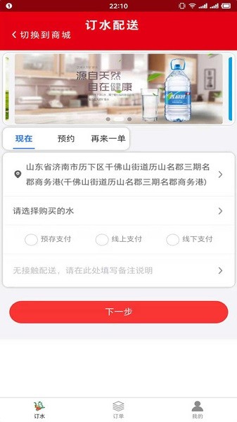 地址管理:可以设置多个收货地址为家人购买饮用水产品。