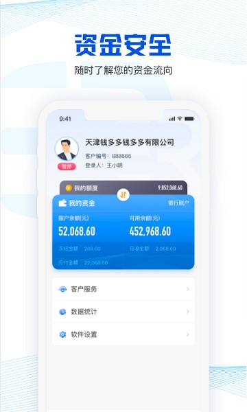 安全保障,在线管理个人的资金信息掌握详细的账单,安全的环境为用户管理资金提供保障