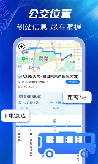 实时查看自己选择乘坐的公交路线位置、发车时间等信息;