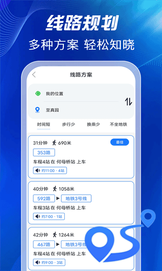 实时公交查询通是款实用的公交查询软件,你可以直接输入目的地,软件会显示最优的乘车路线,你还能设置到站提醒功能,这样就不会坐过站了,它会自动记录你的每次出行路线。