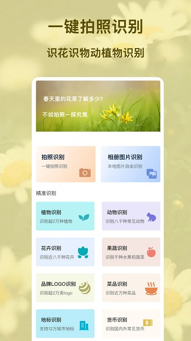 识别超过2万种常见植物和近8千种花卉,识别植物名称及百科信息