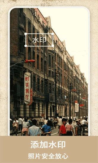 对黑白老照片一键上色,还原符合原场景的颜色。照片轻松添加水印。