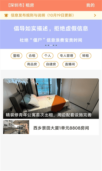 时效信息展示: 我们认为每一秒都宝贵,因此我们的房源信息都经过人工审核,确保完整准确。更重要的是,所有房源信息只在限定期限内展示,过期自动下架,避免“僵尸信息”长期霸屏,节约您宝贵的时间。