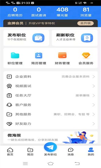 可极速与招聘方进行微聊,进入聊天页面即可发送消息