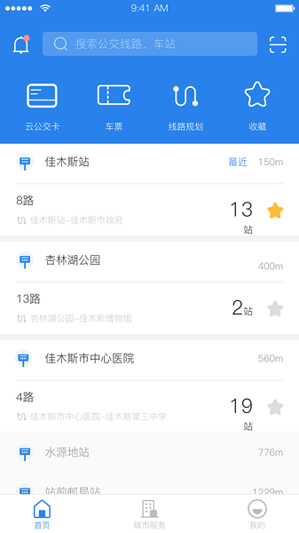 佳木斯城市通app有着非常便捷的城市出行能力,只要使用它就能够查看到佳木斯当地的公交线路以及公交车所在位置,再也不用提前去车站等车了,能够合理的规划好你的时间,而且也不用再带乘车卡或是各种零钱了,只需要带一个手机就能够解决出行问题!