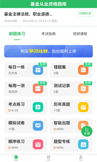 上学吧基金从业考试题库APP有模拟考场、历年真题、每日一练、考点练习、顺序练习、题型专练、做题记录等多种学习与做题模式、丰富多样化的陪你一起考基金从业。