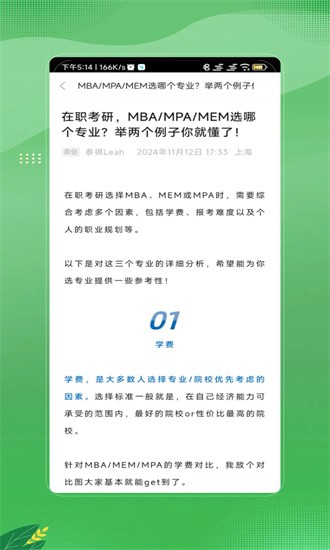 4.涵盖全国知名的MBA商学院,拥有丰富的商学院资讯