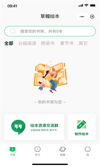 可以将各种英语绘本加入书架,通过书架管理各种英语绘本。