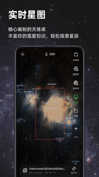 -全天实时星图:内置精选的天体库和丰富的天文知识百科,助你轻松了解星空的奥秘。