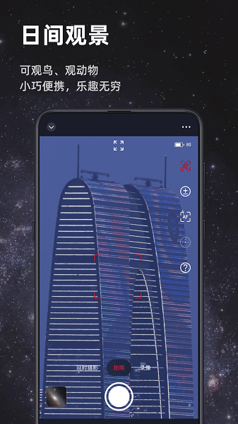 3、日间观景模式:手动控制望远镜方向和自动对焦,让你尽情观察鸟类和风景,享受乐趣。