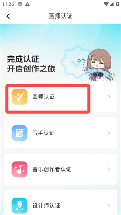 5、选择【画师认证】选项;