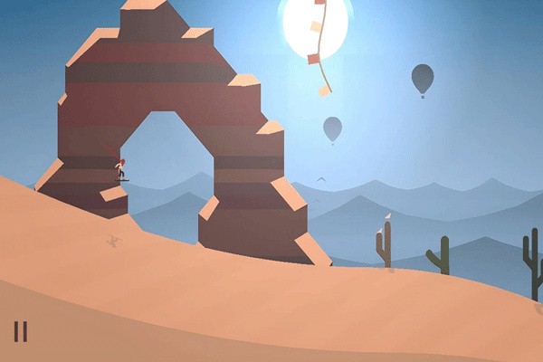 3、滑边操作,操控角色跳跃到热气球下方的彩旗条上,触发滑边动作,获得额外分数,推进关卡进度。
