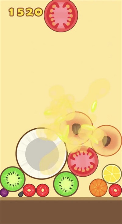2、把控下落时机,让水果切片精准对接,触发合成特效,解锁更高等级的水果切片,持续提升分数。