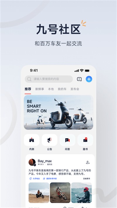 九号出行支持蓝牙快速连接车辆,实时查看电量、行驶数据等车辆状态,可自定义灯光、速度、灵敏度等车辆设置,自动生成骑行日报与骑行轨迹记录,还设有车友圈子、排行榜、俱乐部等互动功能,方便用户分享骑行心得、展示技巧、与全球车友PK交流,是集智能控车、数据管理、车友社交于一体的实用工具。