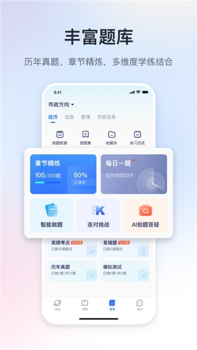4、题库与解析实时更新,碎片练习与系统训练相结合,提升学习效果。