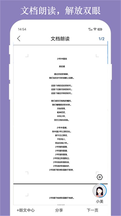 2、拍照识字功能精准高效,拍摄文字即可快速识别。纸质内容、户外标语等都能轻松转为可朗读文本。