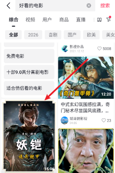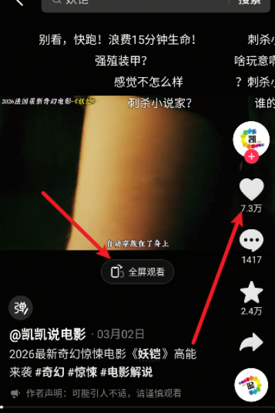4、可点击全屏观看影片,也可双击点赞和右下角的收藏