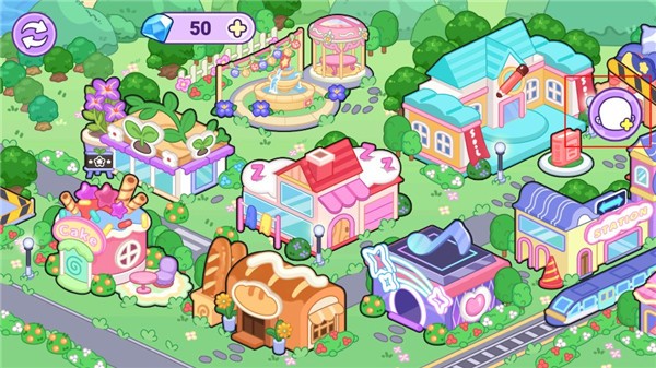 3、小镇场景中,点击各类建筑,进入对应场景,探索不同区域,解锁互动玩法。