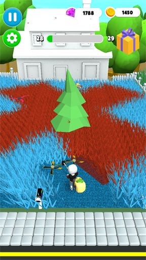 2、利用高速旋转的切割刀片清除目标杂草,快速完成草坪修剪获取奖励。