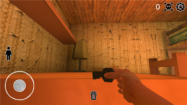 1、开局进入房间后应优先观察周围环境结构,左手控制角色移动,右手滑动屏幕调整视角,熟悉门窗位置与可隐藏点,例如储物柜或角落区域,在行动前规划好撤退路线,避免在突发情况下无处可躲,同时留意地面与桌面上的关键道具。