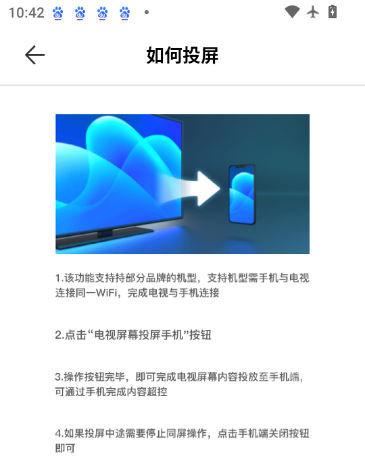 4、若需要结束画面同步,可在手机端界面找到关闭或停止投屏按钮,点击后即可断开当前连接,电视与手机之间的画面传输将立即停止,设备恢复原有显示状态。