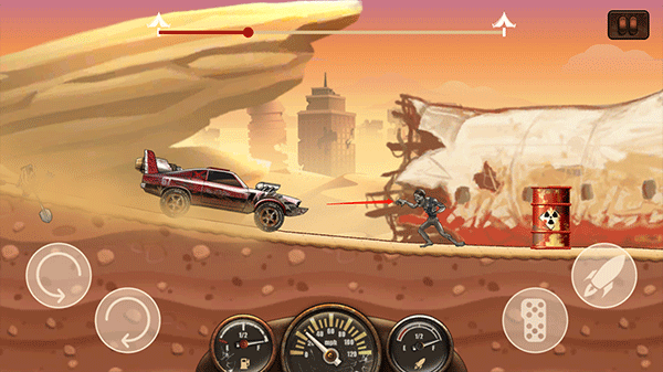 1、《僵尸战车》将复杂的驾驶逻辑简化到了极致。您只需指尖发力,稳稳按住右下角的油门,这台钢铁巨兽便会瞬间咆哮,带您撕裂末日的寂静,冲向冒险的深处。