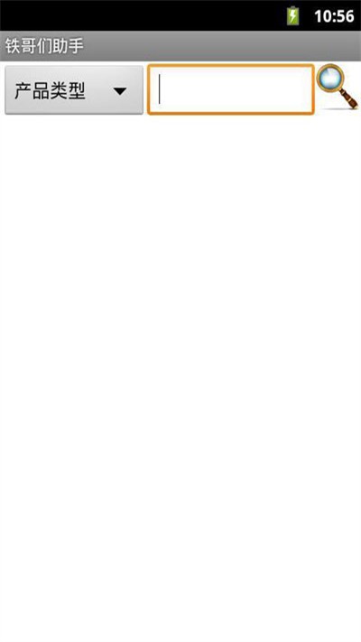 1、进入铁哥们助手主界面,选择产品类型输入框,展开产品类型的选择菜单。