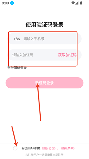 4、新用户可直接选择“登录”入口进入注册流程,通过输入手机号码并接收验证码完成身份验证,即可快速创建账号并进入软件主界面,开始进行基础功能使用。