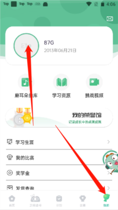 1、打开绘分享app后进入“我的”页面,并点击上方头像进入个人信息界面。
