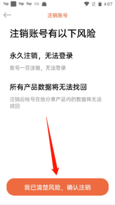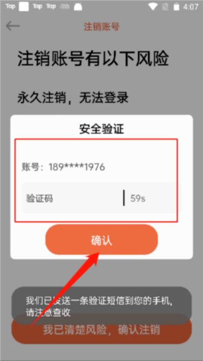 4、阅读注销风险提示后勾选确认,并点击“确认注销”继续下一步操作。