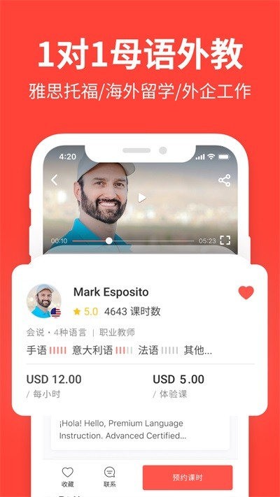 2、提供在线1对1真人母语外教授课,发音地道表达自然,有效提升口语交流与实战应用能力。