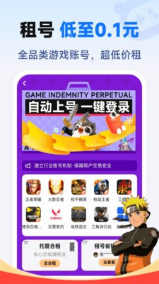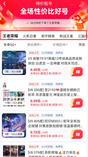 2、在租号页面浏览热门游戏列表,根据自身需求挑选租赁账号的具体游戏,分类清晰便于查找。