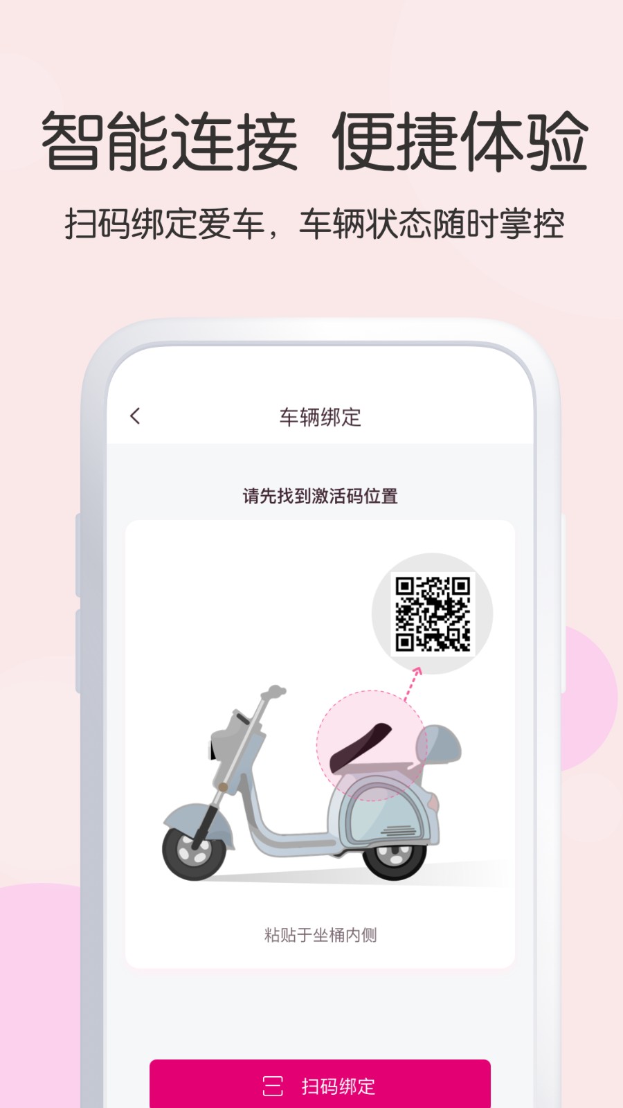 1、打开爱玛智行app,点击首页【绑定爱车】入口,进入车辆绑定页面,准备添加自己的电动车信息。