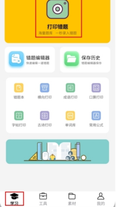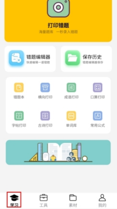 3、返回首页后点击“打印错题”功能按钮,进入错题处理与准备打印页面。