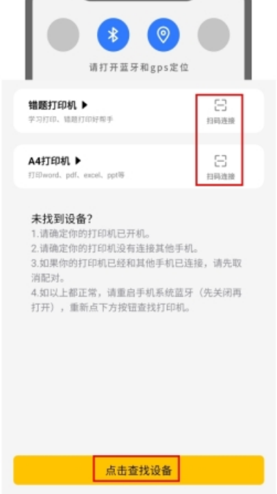 2、进入连接页面后使用扫码工具扫描设备二维码,或手动搜索设备名称完成绑定操作。