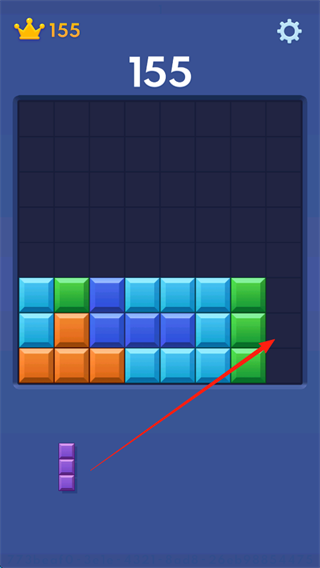 1、拖动屏幕下方出现的不同形状方块,将其放置到上方网格中的空白位置,每个方块一旦落下便无法移动