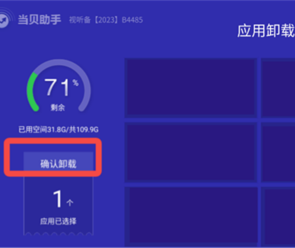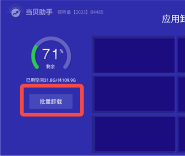 1、打开当贝助手TV版后,在功能列表中点击“应用卸载”进入应用管理界面。