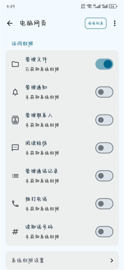 3、连接成功后,在手机App中选择电脑端选项,完成授权以访问手机内容。