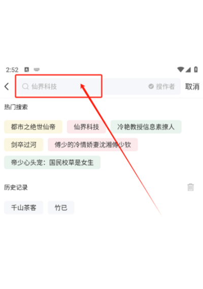 2、在搜索框内输入想看的小说名称或作者姓名,系统将快速检索匹配内容。