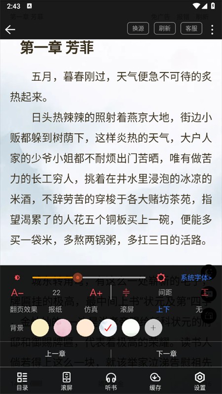 4、进入阅读界面后,即可沉浸式阅读喜欢的小说内容,可根据自身习惯调整阅读设置。