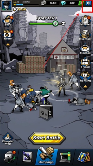 1、进入游戏并完成新手引导,在可自由操作后点击右上角【设置】按钮。