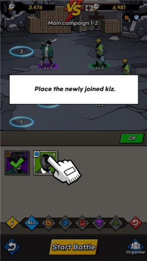 1、进入战斗界面后,选择合适角色上阵,组成当前作战阵容。