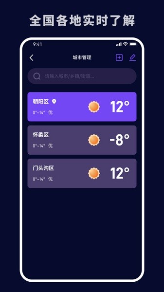 随心所欲,随意切换,让你轻松掌握全国各地的天气信息,享受不同城市的魅力和风情。