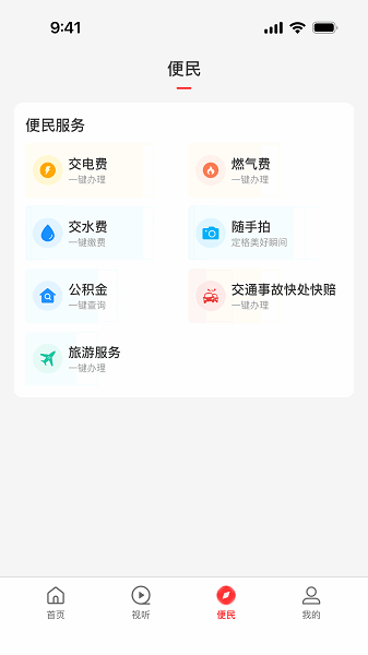 4、首页点击“便民服务”,可按生活、政务、医疗等分类查找功能,常用服务可添加至首页快捷栏。