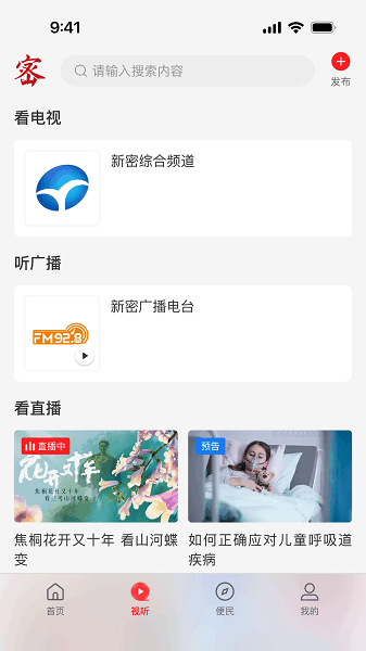 云上新密是一个非常不错的新密地区融媒体服务应用,整了当地的优秀资源,带来最全面的新密新闻资讯,在政务号可以看当下新密时政信息,在视听模块自由看电视听广播,还有很多便民模块和社区模块带给大家惊喜。