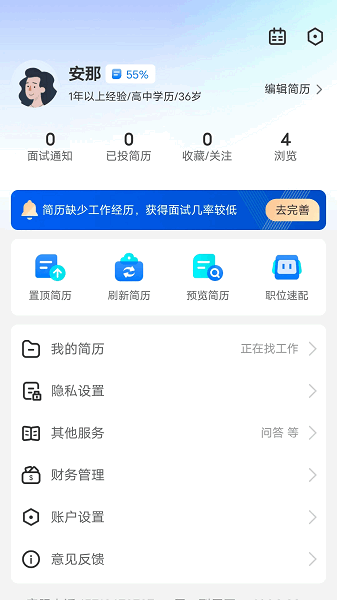 1、【简历中心】刷新简历,让HR优先看到你,找工作快人一步