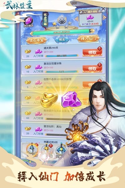 创新成长之路玩法,拜入仙门快速变强,丰富灵石,寻宝有机会获得SR神将!