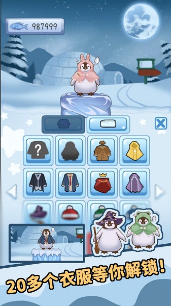 帮助你的企鹅可以更换更多的衣服,享受每个不一样服装的可爱。